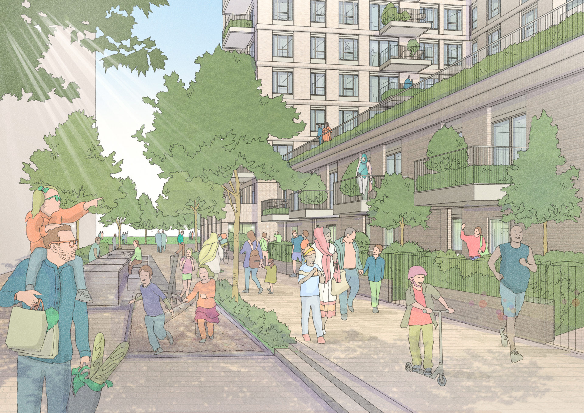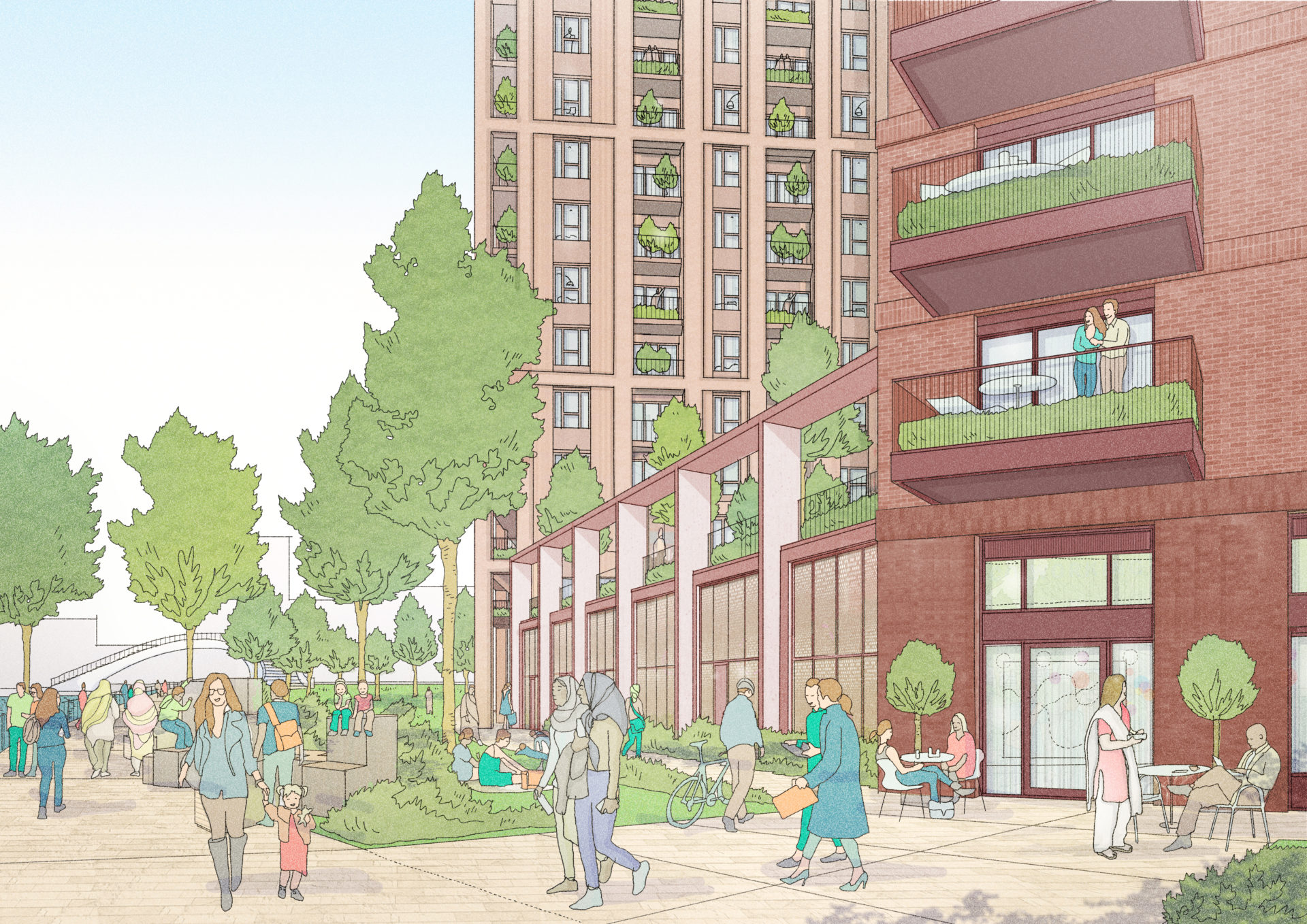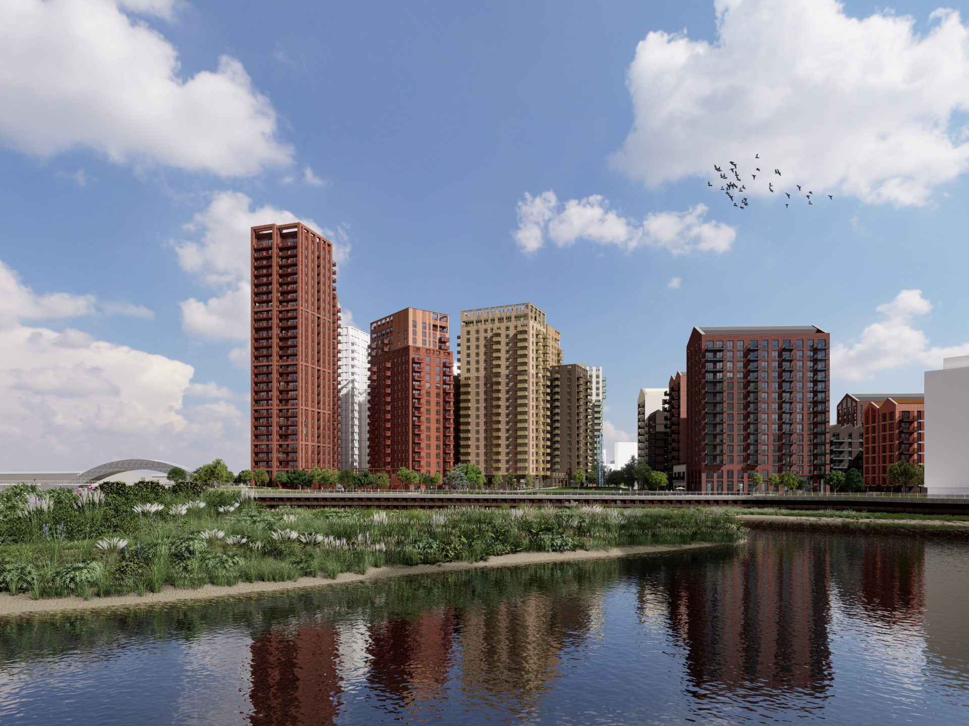 Adopting the landscape-led design approach that was established in Phase 1, these next phases will deliver approximately 1,934 homes along the riverside and will range from studios to four-bedroom family houses. Alongside the delivery of new dwellings, a diverse mix of commercial and community spaces will be incorporated, including ground-floor facilities such as cafés, a community space, and commercial premises. These uses will help create activity and footfall, strengthening the connection between the nearby Aberfeldy neighbourhood with the key spaces within Heron Wharf and beyond.