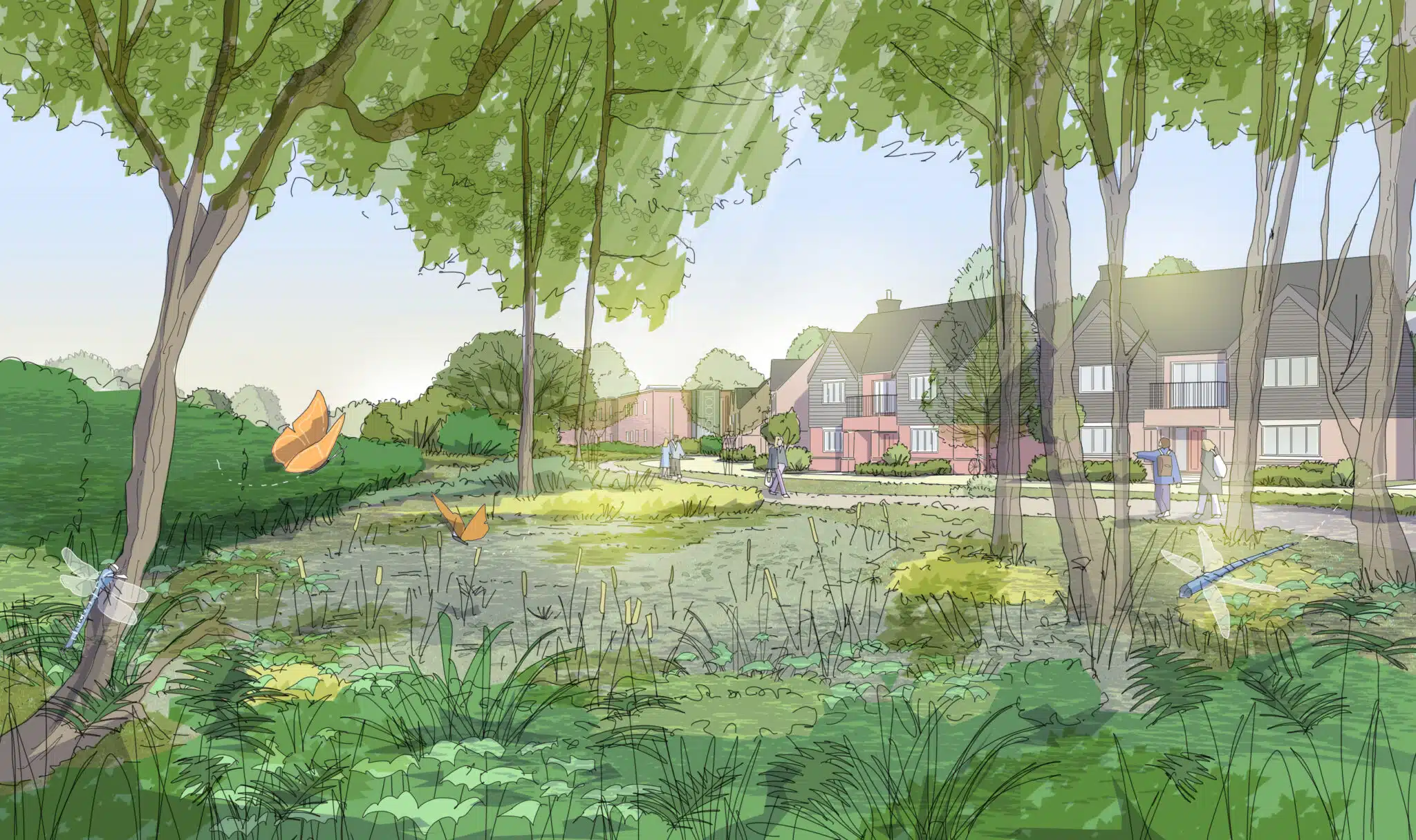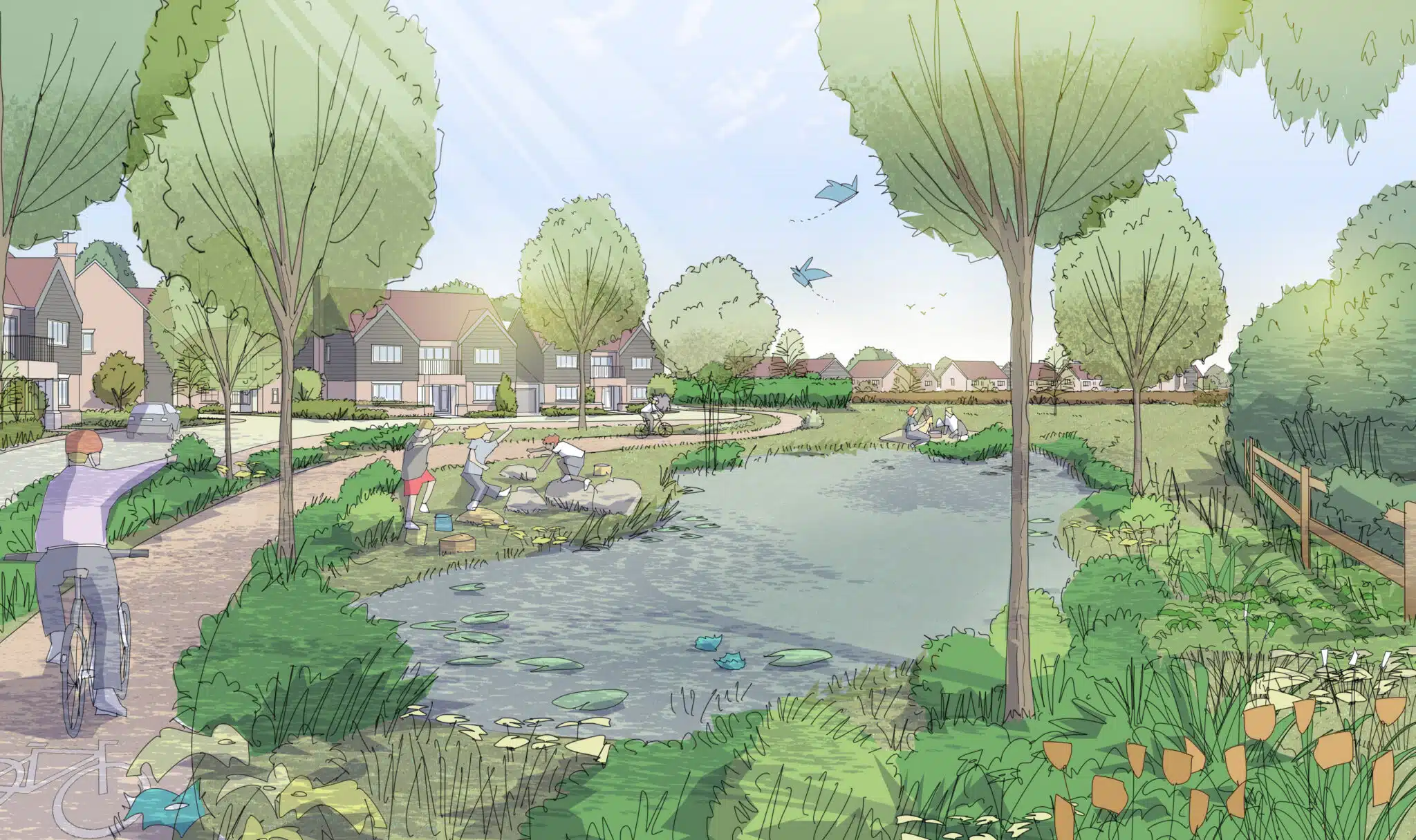 The neighbourhood will provide 150 homes in a variety of sizes, from one-bedroom to five-bedroom dwellings, ensuring diversity and affordability, with over 50% of homes designated as affordable. Well-designed streets and public spaces with clear routes, landscaped spaces, active frontages and trees will establish a walkable community that prioritises connectivity and social interaction with the wider Kings Langley community. The project delivers a minimum 10% biodiversity net gain by proposing over two hectares of public open space, habitat ponds and wetlands encouraging wildlife connections and nature recovery networks.