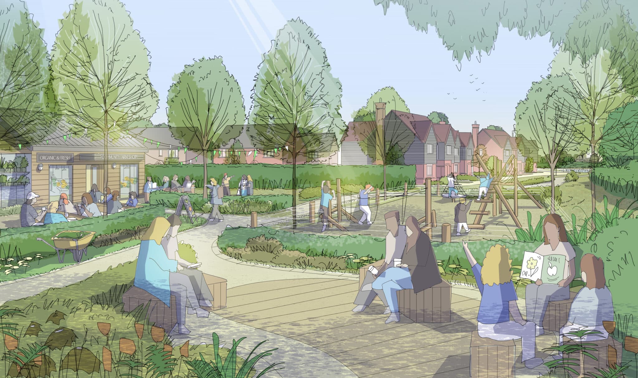A key component of the proposal was an alternative educational facility. A significant proportion of children experience challenges within traditional educational and built environments, with research suggesting that up to a third of children live with physical and/or mental health conditions. Harnessing place data and stakeholder engagement, the need for an alternative education facility emerged through the consultation process, including direct engagement with Kings Langley Secondary School (KLSS). This educational and community hub became a key focus of the proposals resulting in the design of “The Farmstead”, managed by Sunnyside Rural Trust and which will sit adjacent to KLSS and form the community heart of the site.