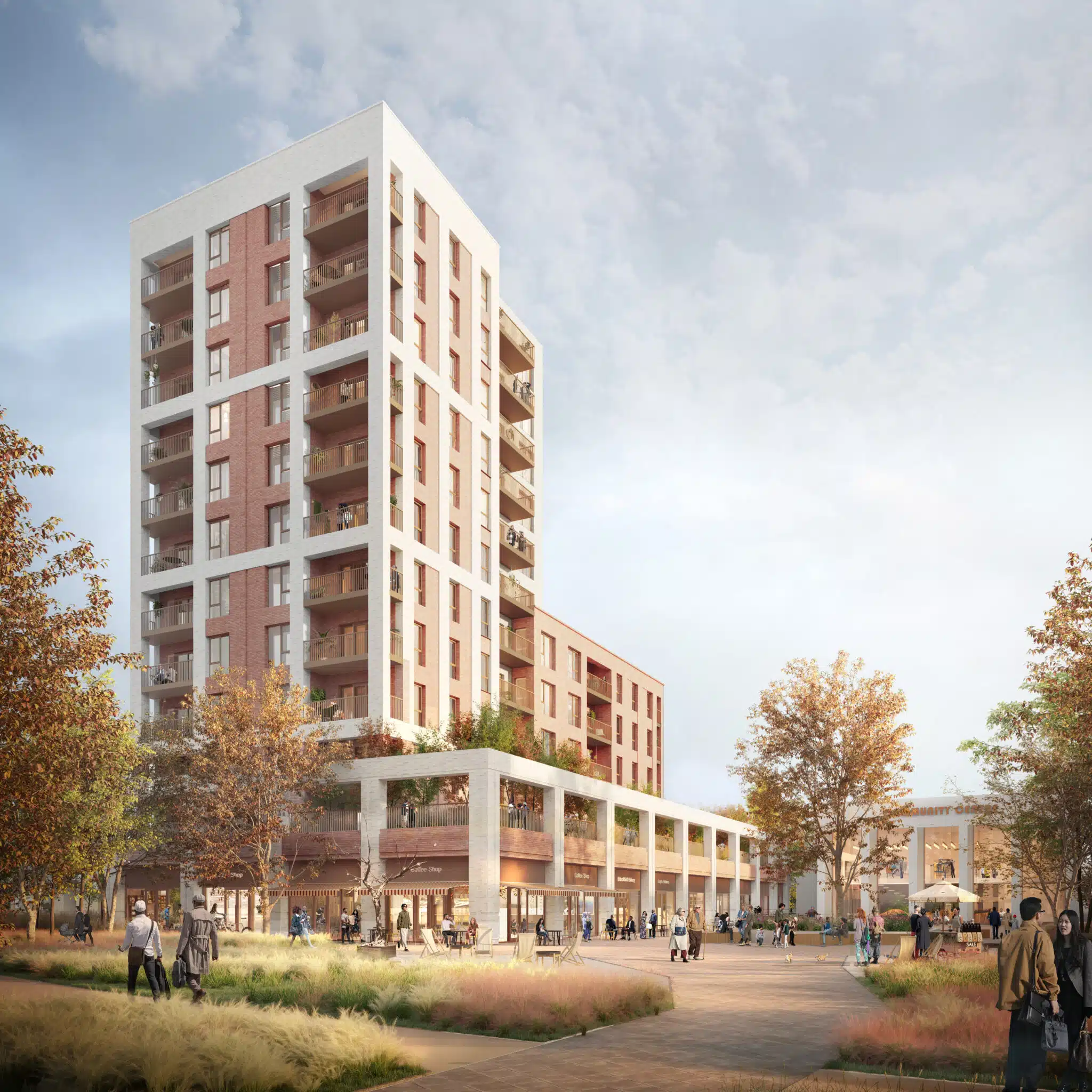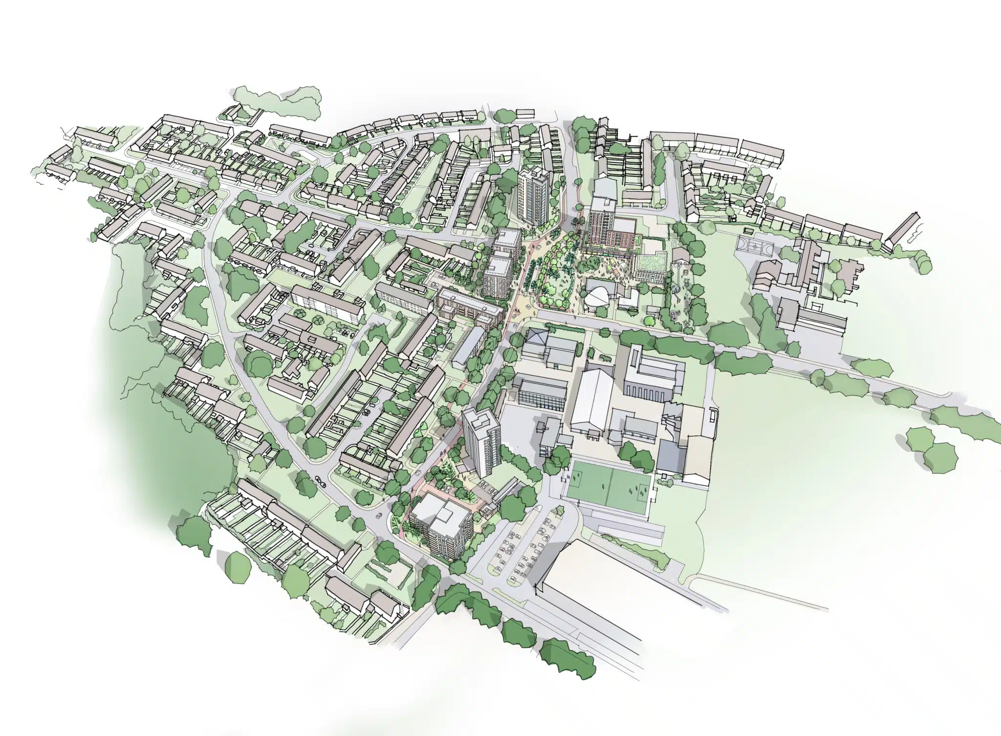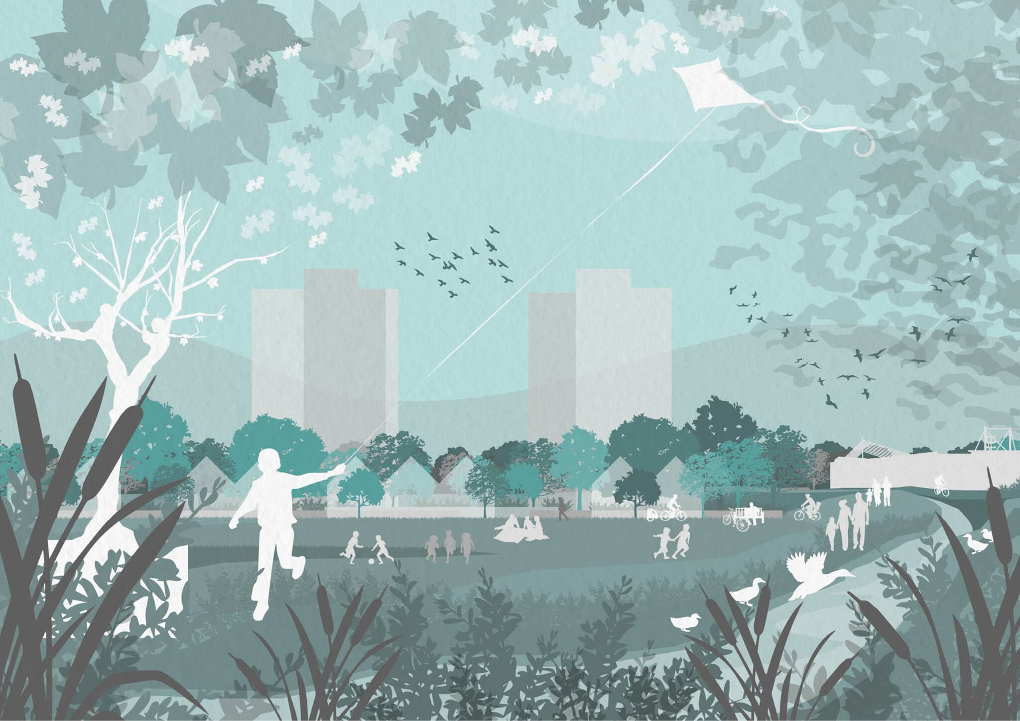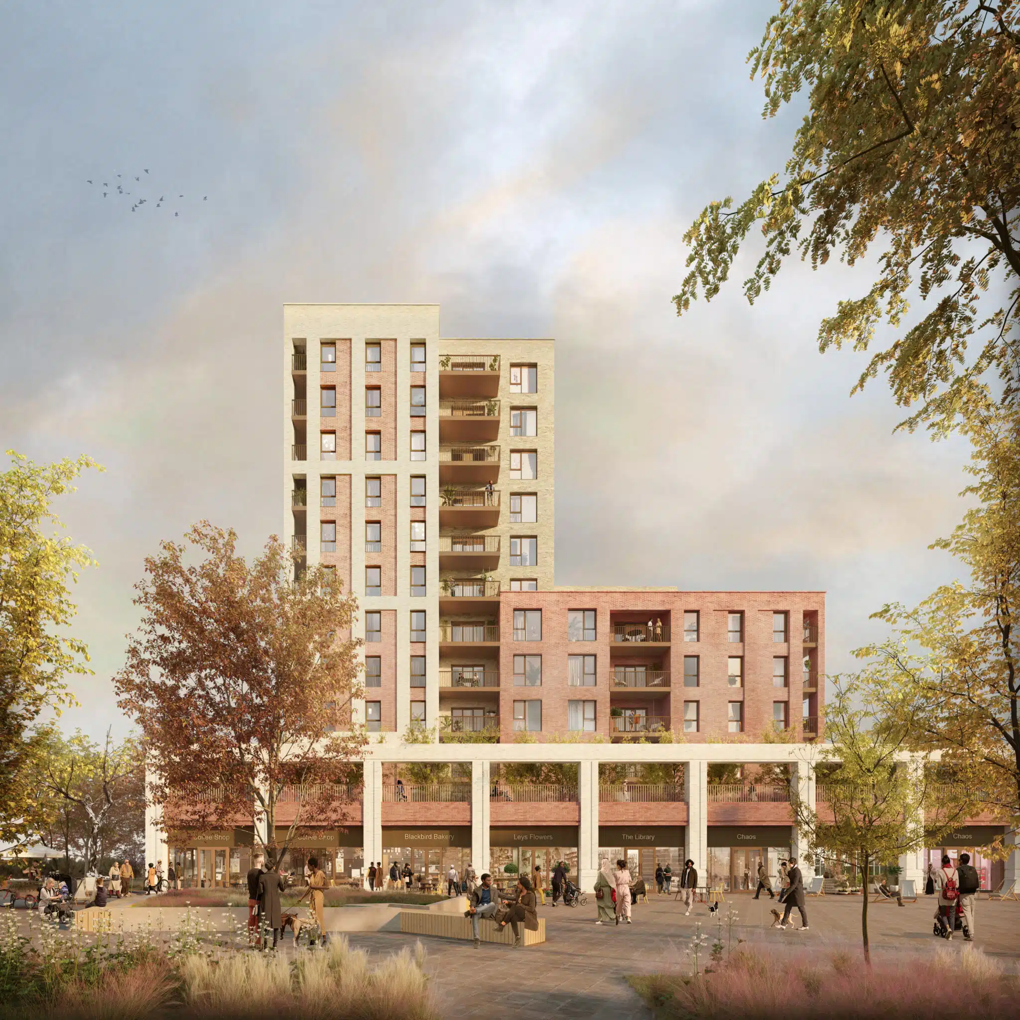 Blackbird Leys is a high-density social housing scheme that provides 294 affordable, low-energy homes within infill sites across Blackbird Leys District Centre in a joint venture between Oxford City Council (OCC) and Peabody Housing Association. The regeneration utilises a patchwork of underused and infill council-owned land that caused a disconnect in the estate’s urban fabric, to meet the needs of the existing community. The project rethinks the importance of these spaces and redefines spatial priorities – demoting the car – to enhance pedestrian experience, introducing greenery through tree planting initiatives whilst helping to celebrate and recognise the established community.