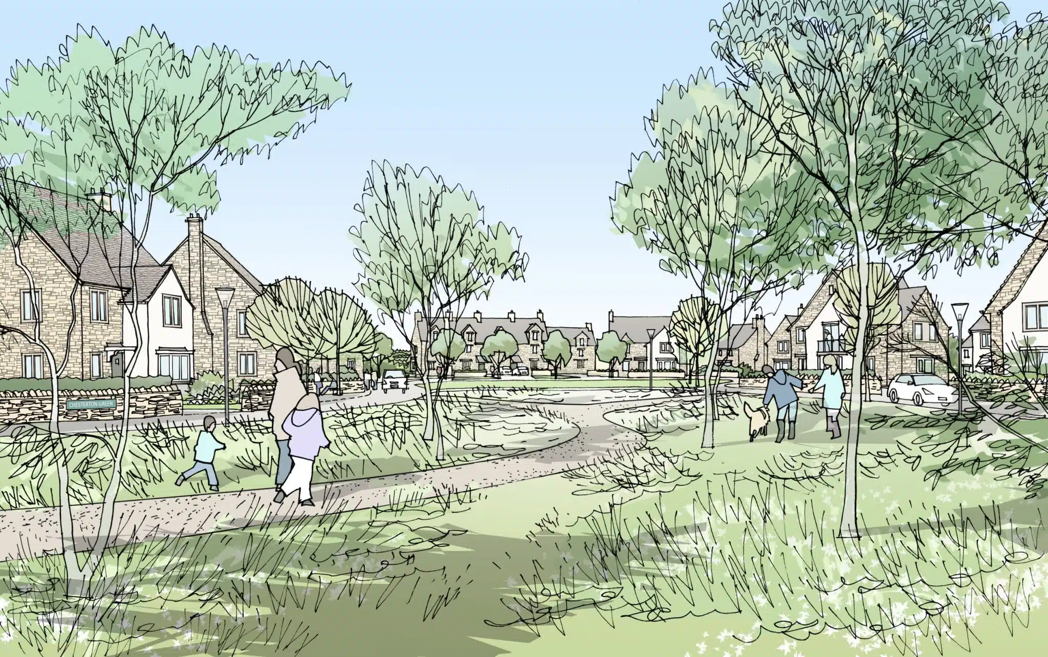 – A series of pedestrian routes and cycleways comprising attractive circular routes and integrating the scheme with Chesterton and the town centre.