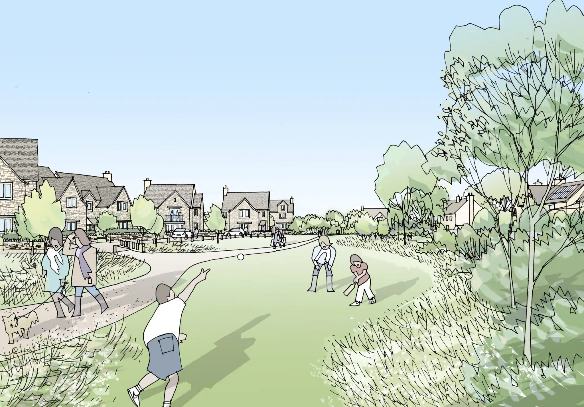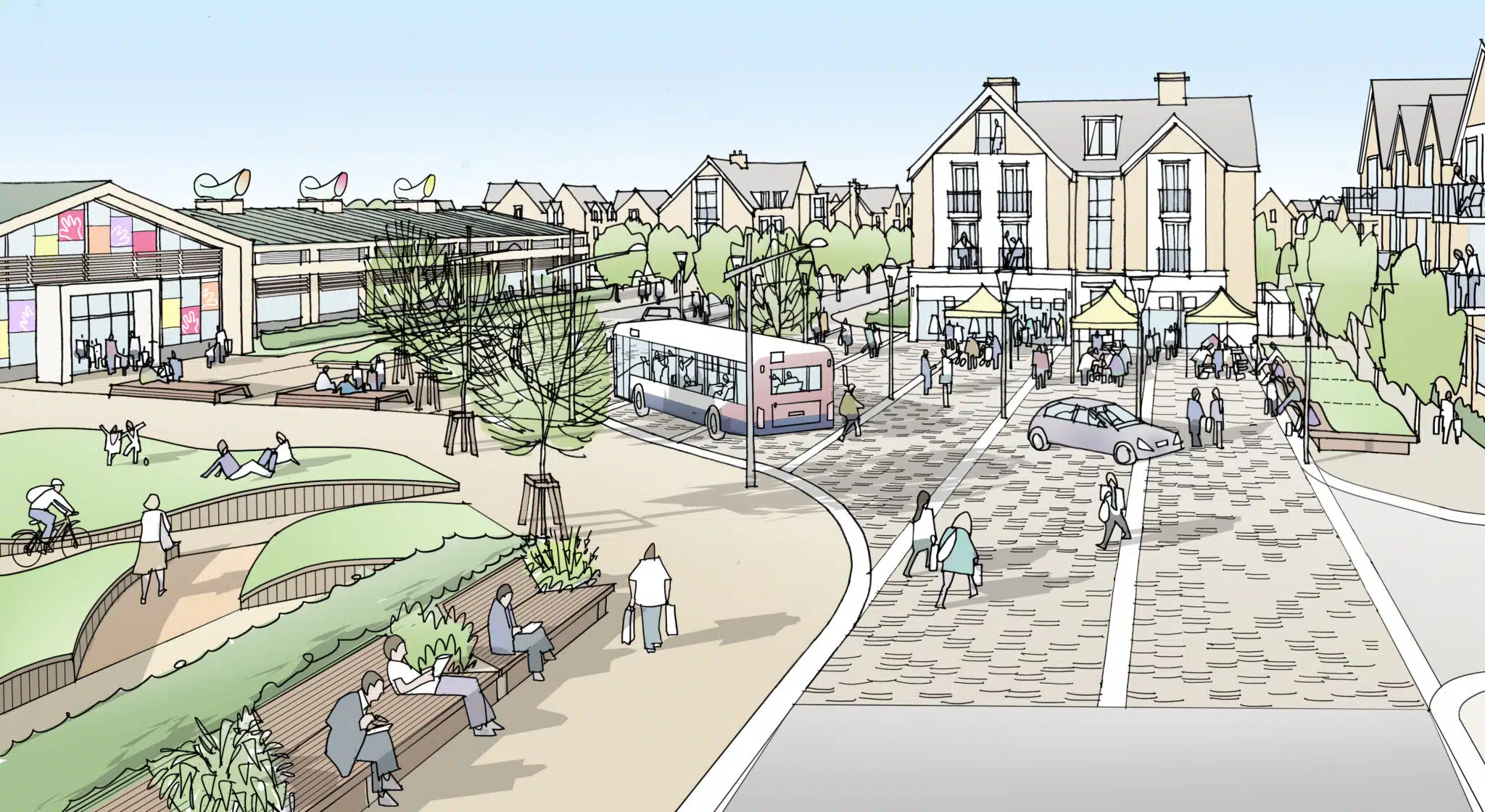 – A Community Hub including: a community hall; a sports hall; GP surgery; local convenience stores; and the possibility of a pharmacy, bank, restaurant, and public house.