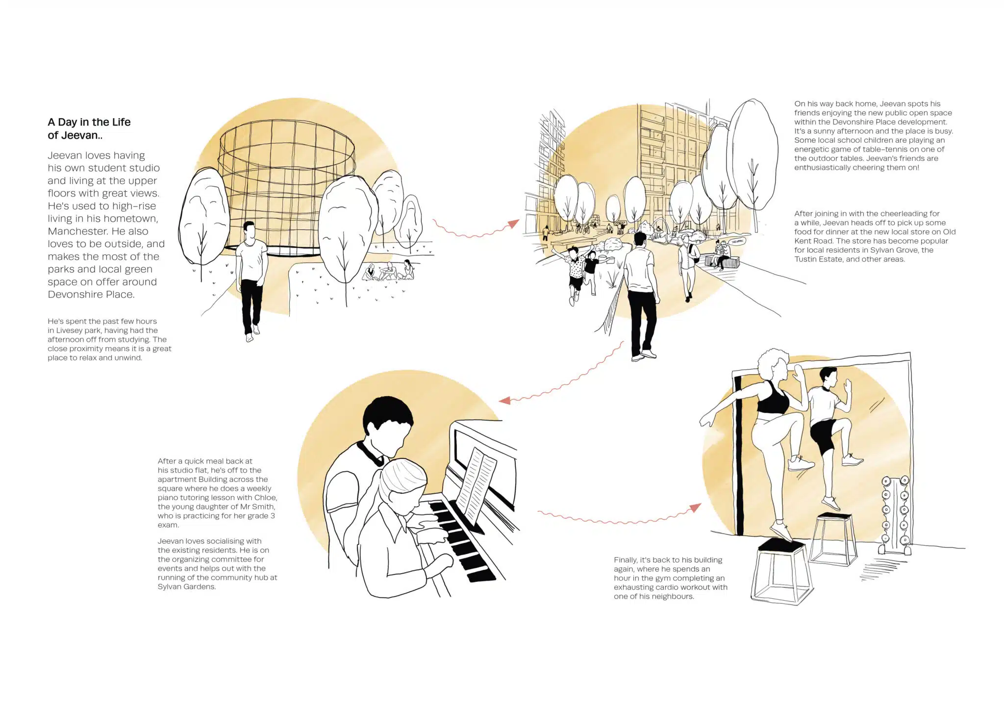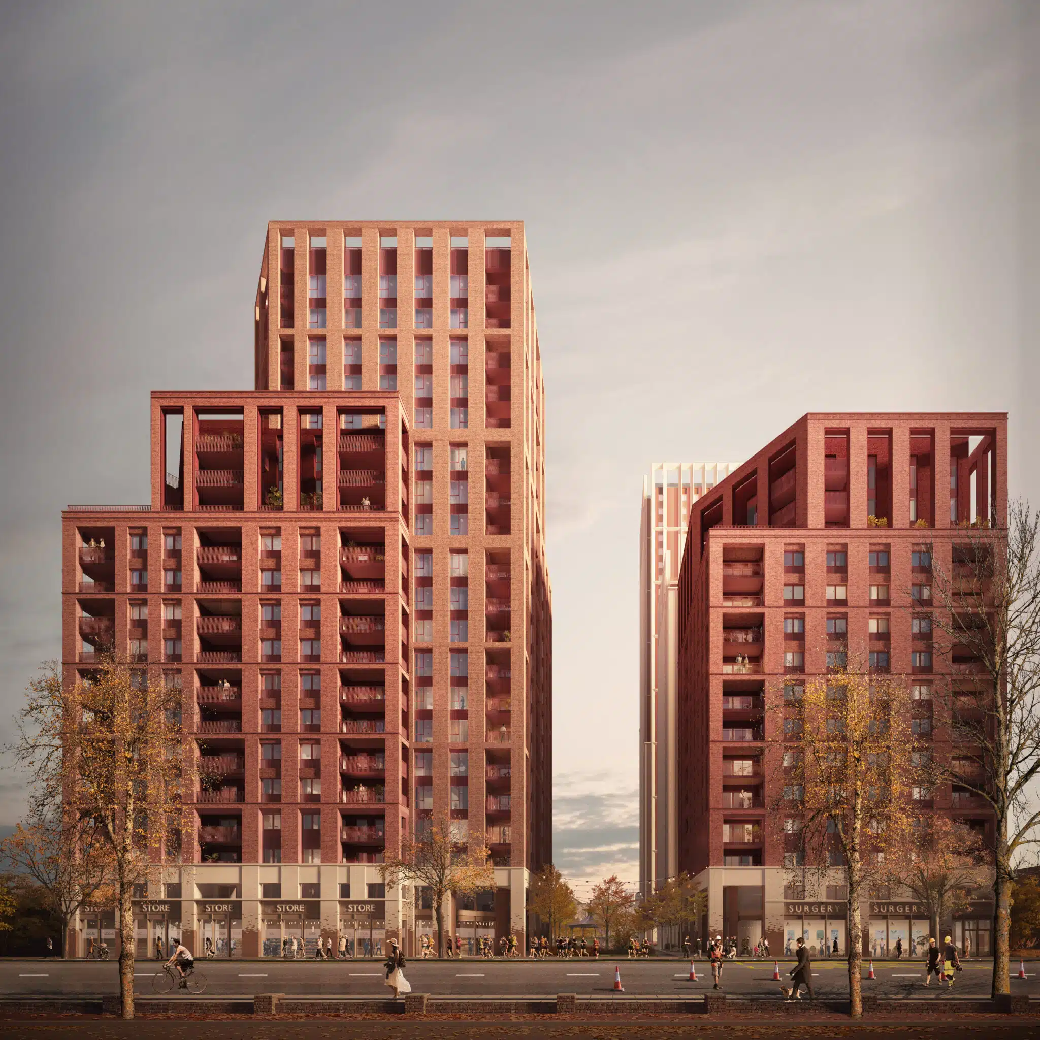 JTP’s masterplan-led approach centres on the creation of green corridors between existing and future green spaces to revitalise a once heavily trafficked and industrial area into a pedestrian friendly neighbourhood. The masterplan consists of four tall buildings, ranging between 15 to 33 storeys in height; with an active ground floor featuring a new GP surgery, grocery store, café and community hub. The community hub will be over 1000 sqft and will be made available to residents and the existing local community as a free bookable space for community events and activities.