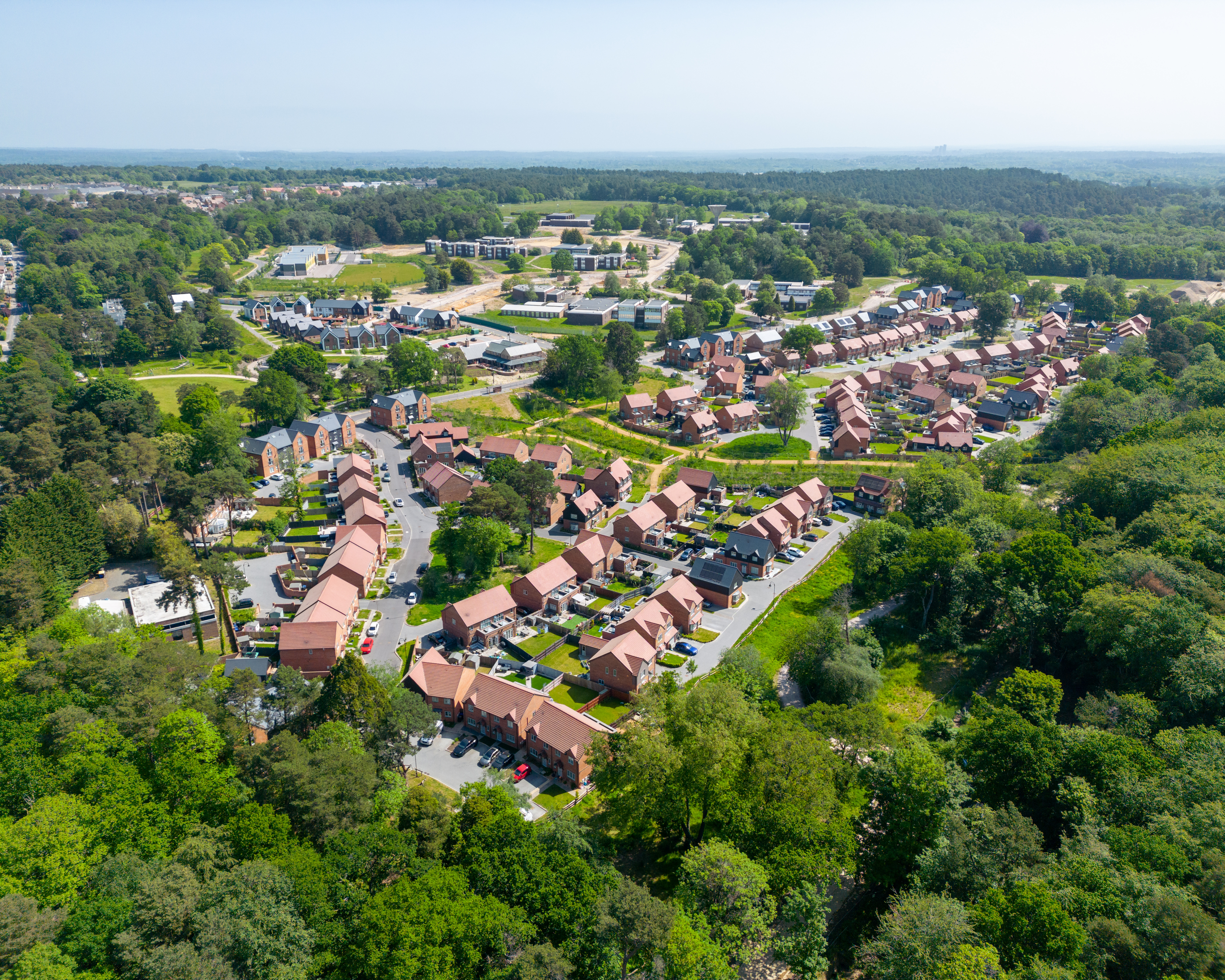 Mindenhurst is a new mixed-use neighbourhood forming part of the Surrey village of Deepcut. It has been created on the site of a former British Army training facility, the Princess Royal Barracks (PRB), which for many years occupied a major part of the small settlement – but lay behind secure and patrolled fence lines. The redevelopment of the site unifies the area with the wider village, opening it up with the delivery of new homes, community infrastructure and accessible landscape.