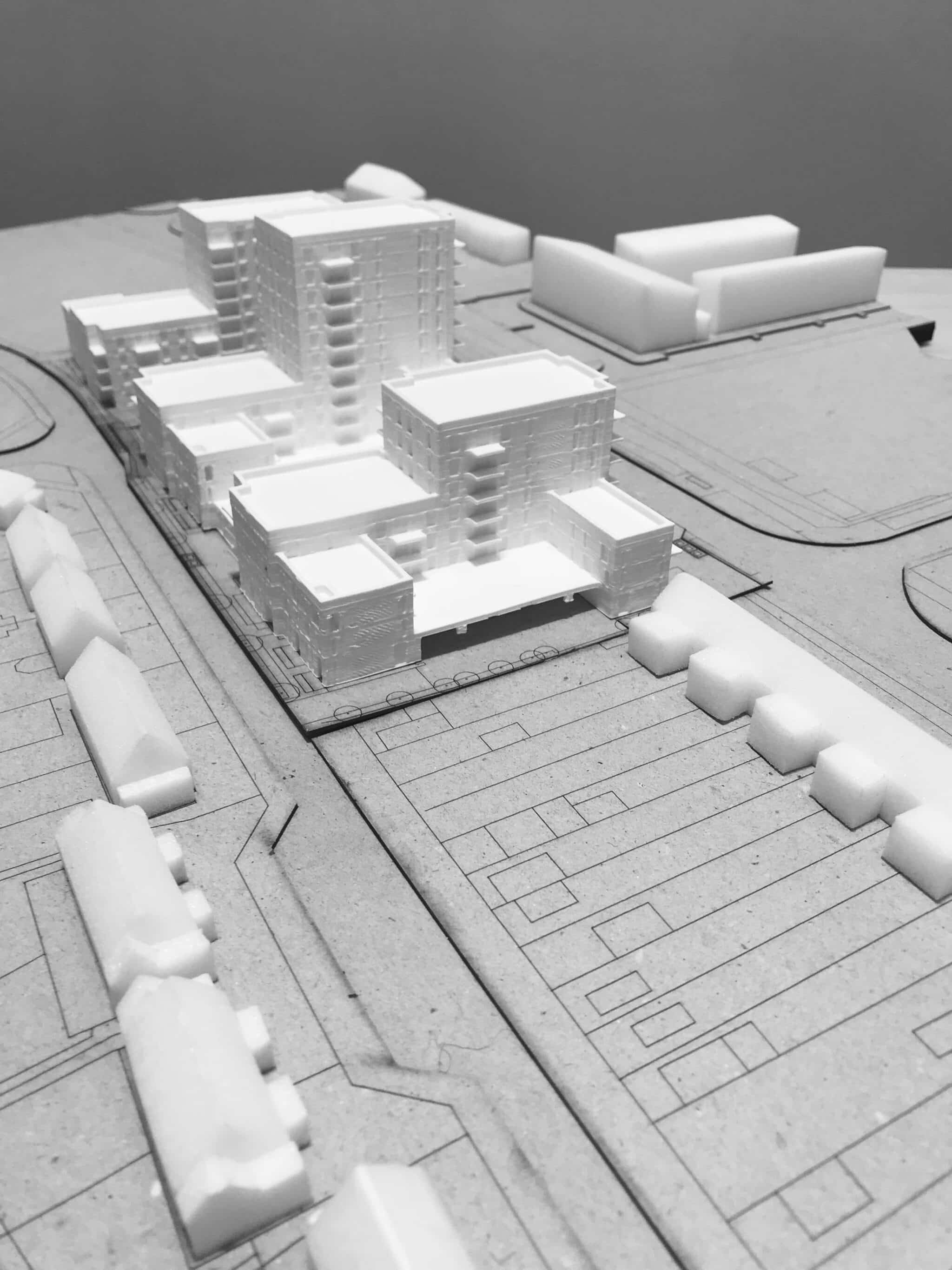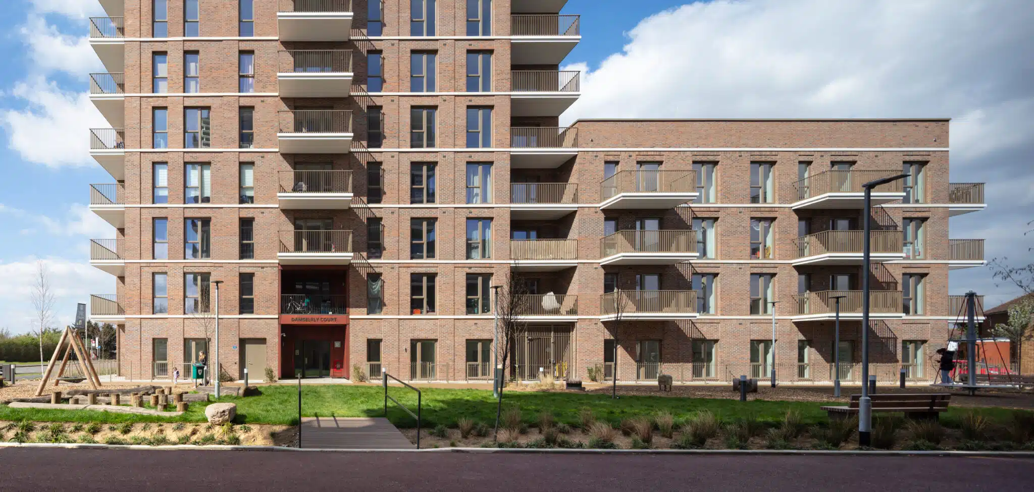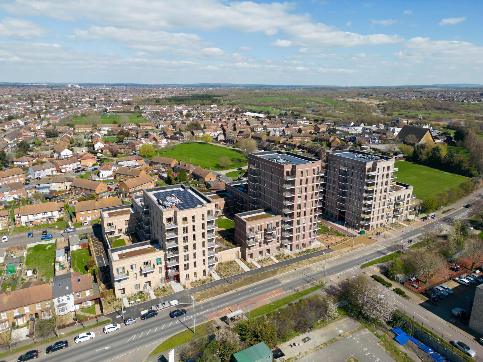 Delivered as part of a wider estate regeneration project by a joint venture between Wates Residential and London Borough of Havering Council, New Green replaces two poor-quality 13-storey tower blocks that were having a negative impact on the street, neighbourhood and wider area, with an integrated new community formed of mid-rise, high-density buildings of 197 homes, arranged around new open spaces and public realm.