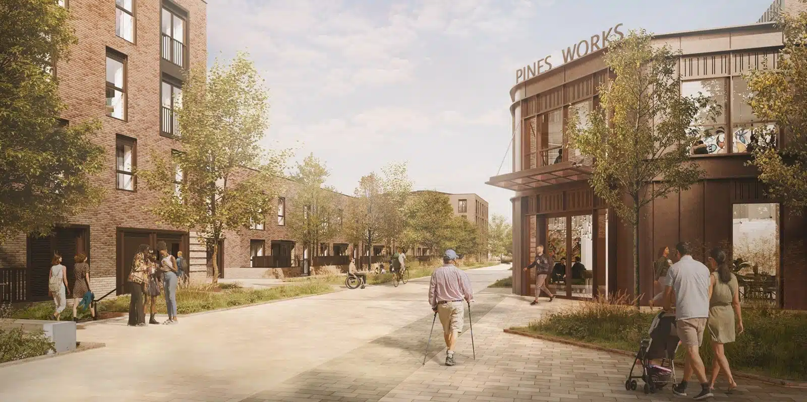 Contributing to the enhancement of the River Avon as a ‘habitat highway’, the site forms an important piece of the emerging mosaic of biodiverse spaces along the river corridor. Forming new connections to the riverside, Pines Way will deliver a biodiversity net gain of over 20% through multifunctional landscaped spaces featuring green streets, gardens, squares, swales and raingardens.