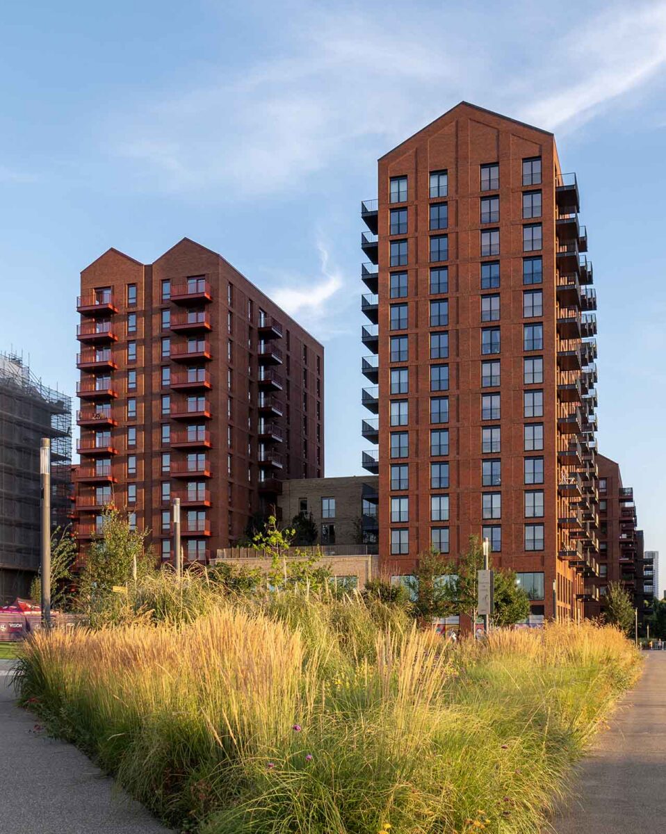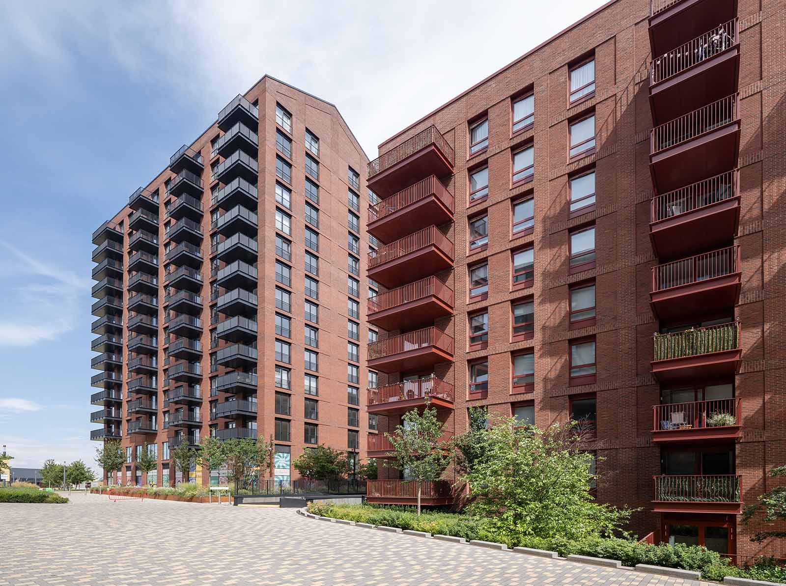 Responding to the site’s rich heritage, Phase 1 Leven Yards will embody distinct traits of east London’s industrial history through brick warehouse building forms, roof profiles and detailed balcony design. The surrounding buildings complement the preserved sections of the existing gasholder incorporated in the public realm which reinforce the area’s industrial past.