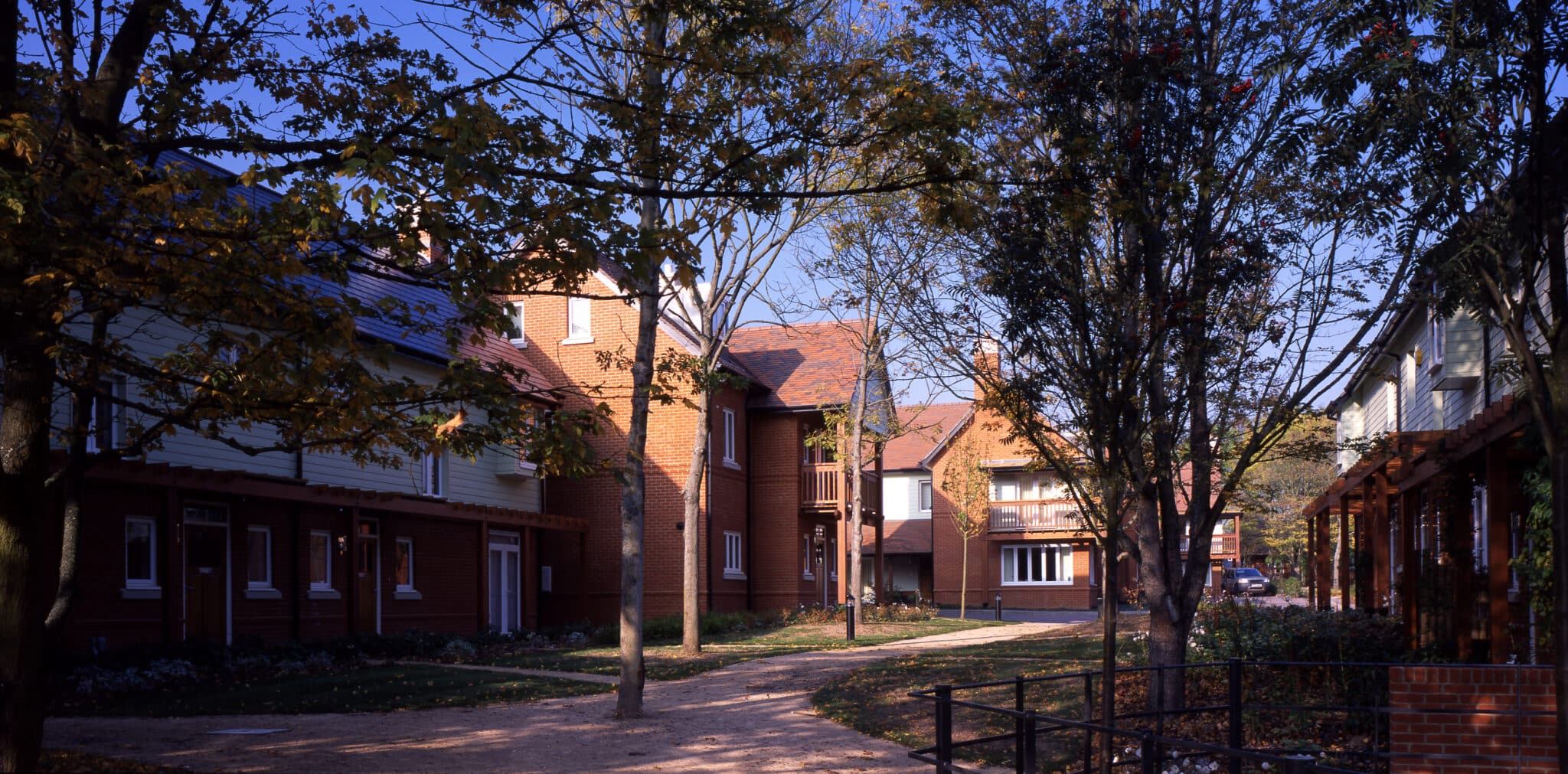 The site is set within an area of typical post-war suburban housing that has grown up around the barracks with few local facilities and a deficit of public open space. The original site did not contain any buildings of quality, though it did provide a mature landscape with established woodland, which has been retained and enhanced as a key feature of the new neighbourhood. More than 1,000 trees have been preserved.