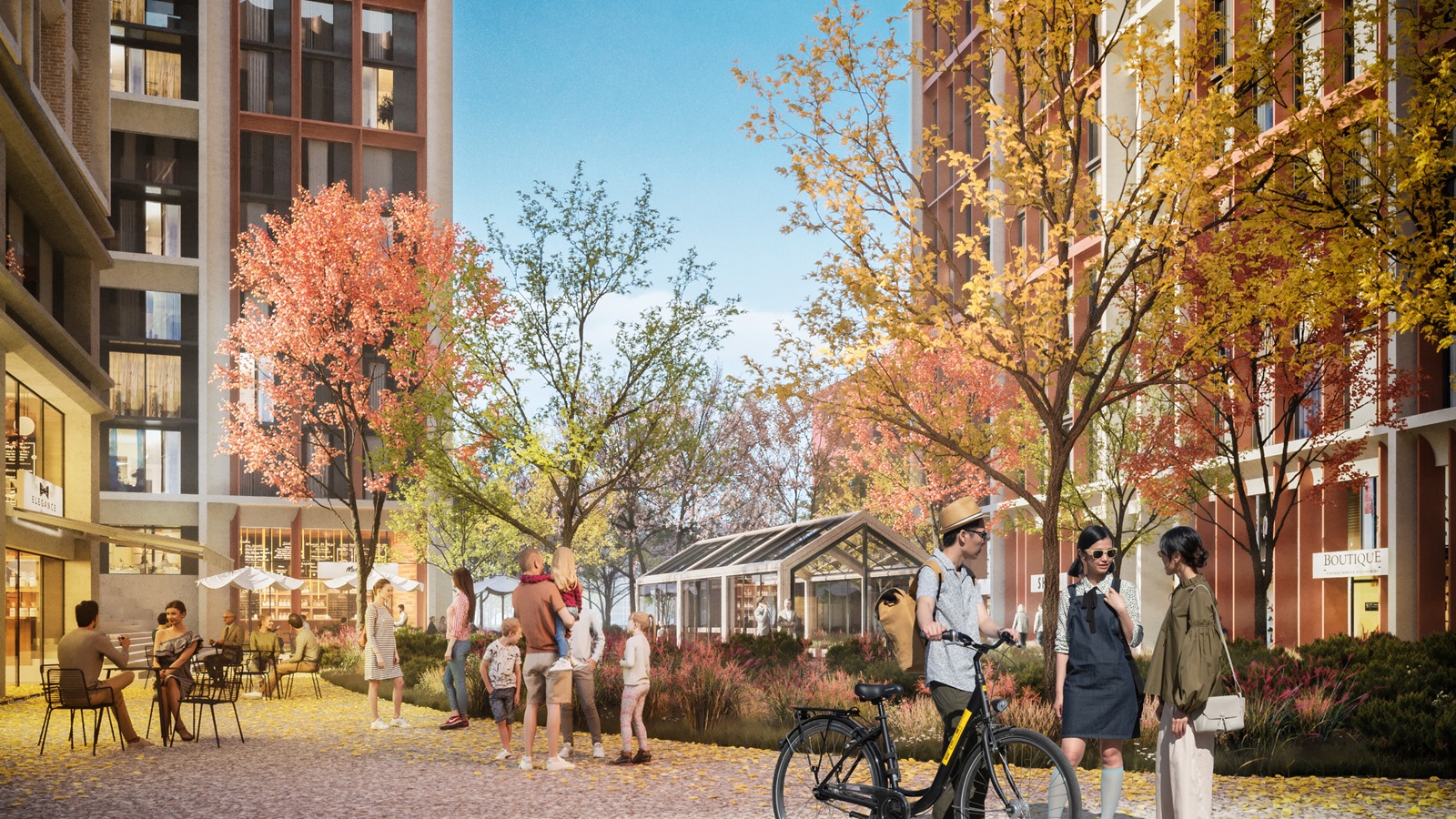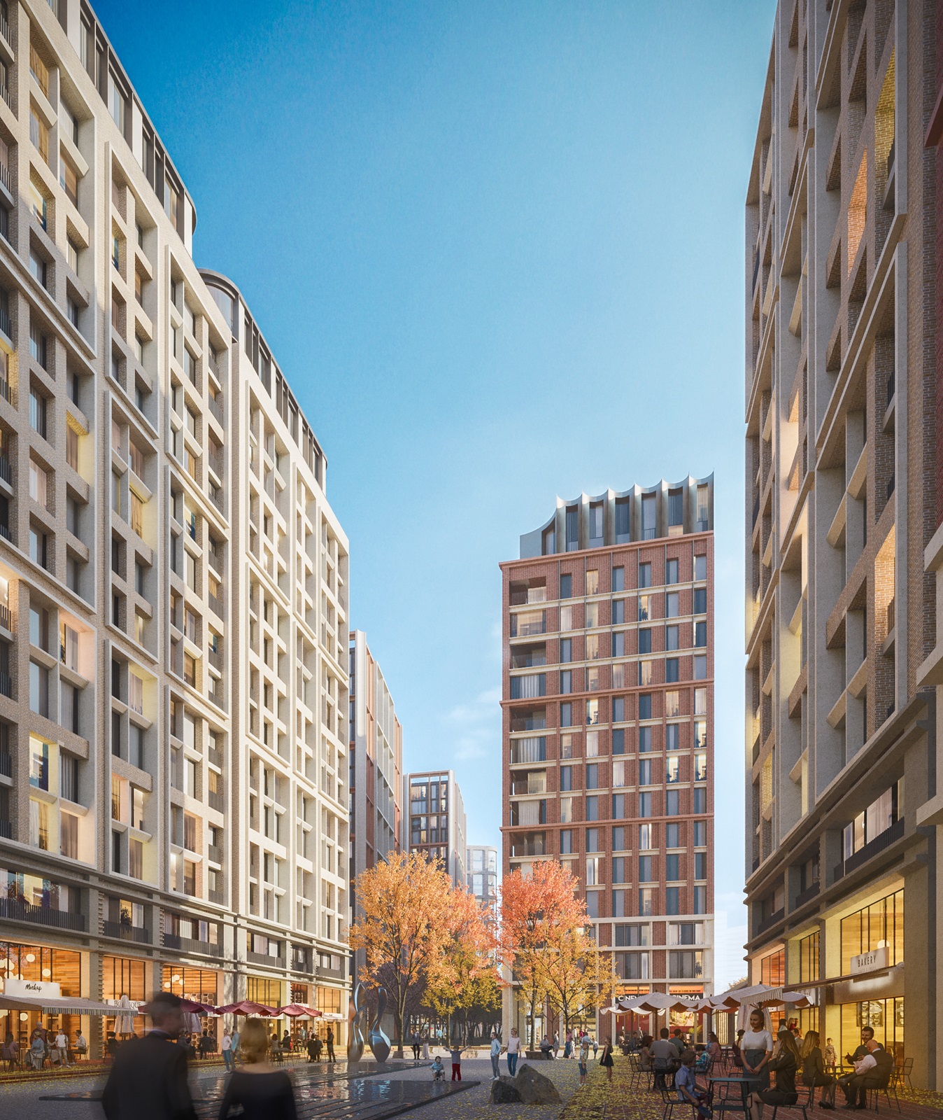 River Gardens is a mixed-use neighbourhood conceived as a sequence of green, people-focussed spaces embedded within a major urban regeneration project. The primary entrance to the development is formed by landscaped park corridors, establishing a strong connection between the public realm and the residential environment.
