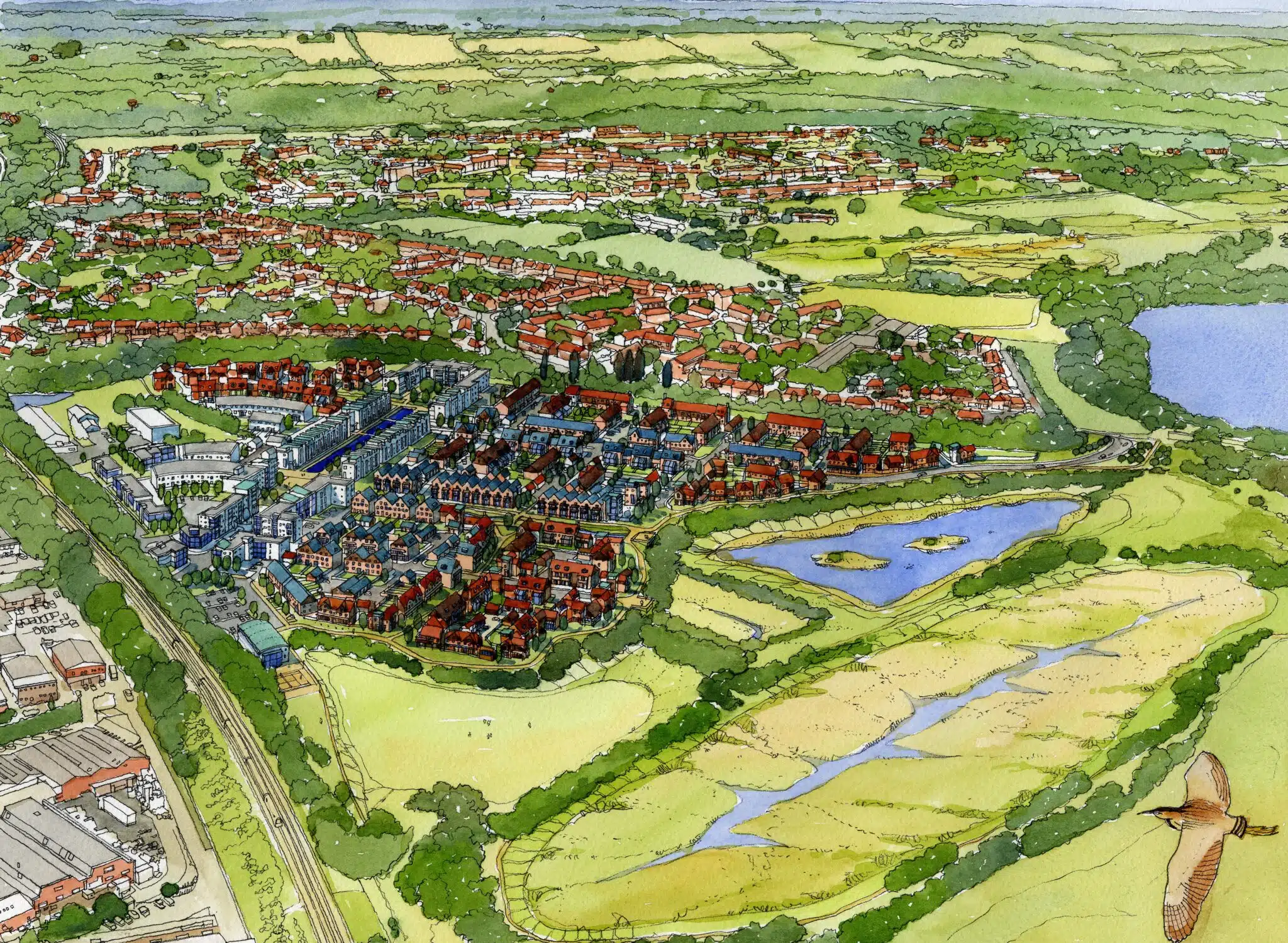 – A linear wildlife corridor along the watercourses to increase bio-diversity, provide a natural habitat for wildfowl and link to the wider ecological area managed by Surrey Wildlife Trust.