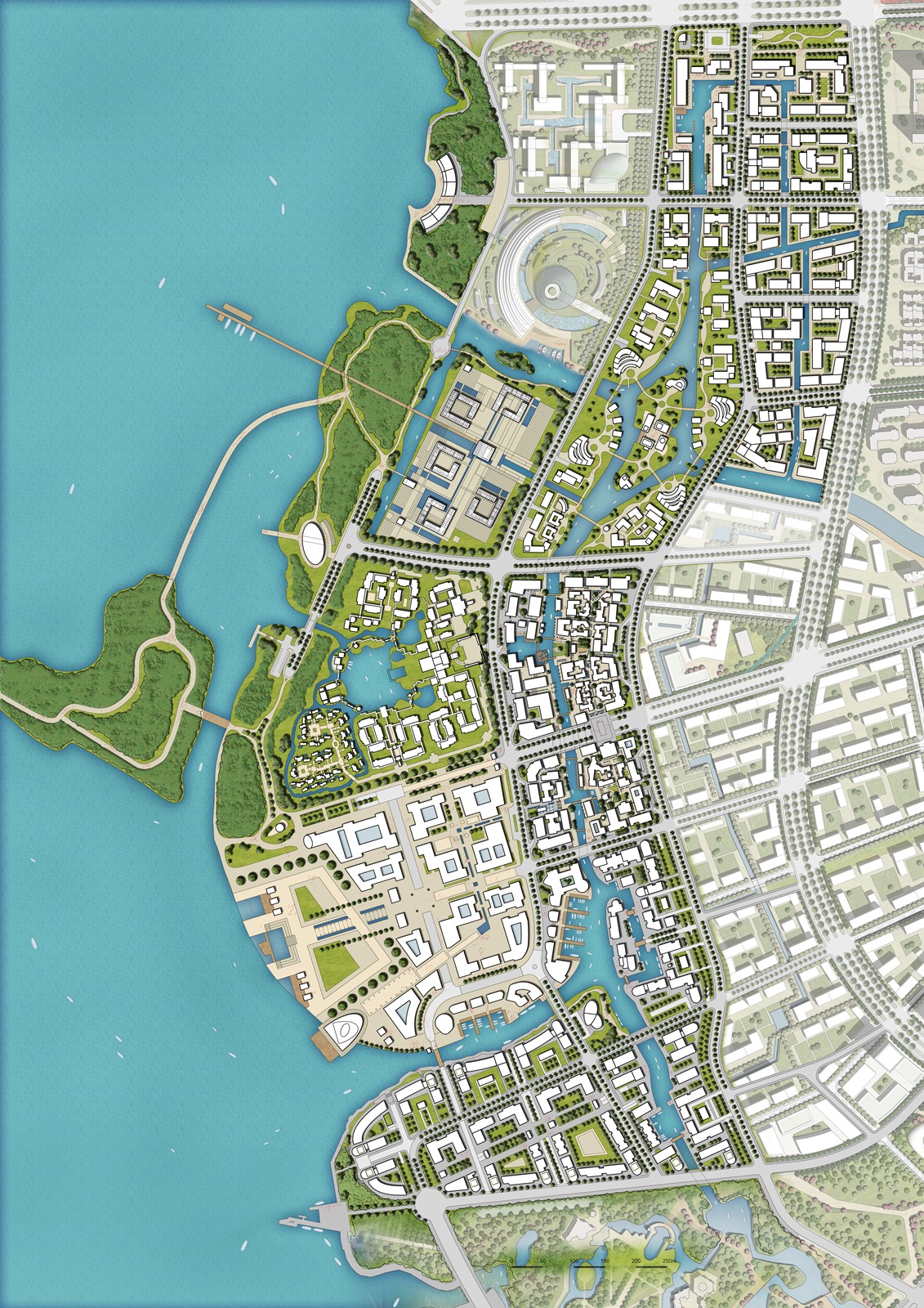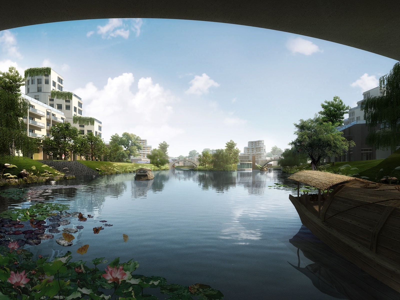 A canalside neighbourhood at the centre of Wuxi Li Lake New Town