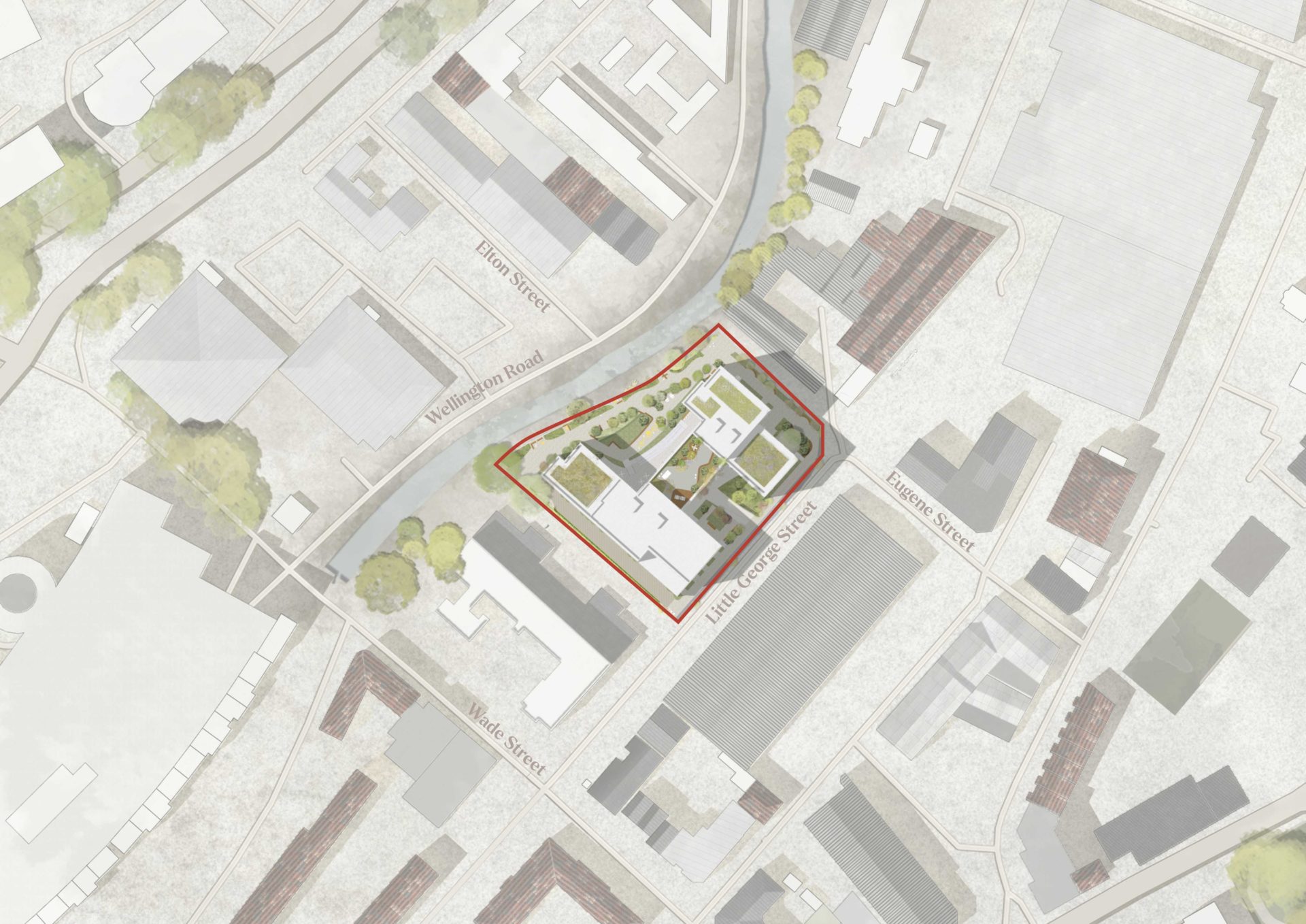 Working in coordination with the neighbouring Crown Sawmills site, the proposals reimagine the long-vacant brownfield site, opening up previously inaccessible land to reconnect Eugene Street to the River Frome, directly supporting Bristol City Council’s ambition for a greener, more connected riverside corridor.